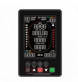 - Muestra resistencia del aire más niveles magnéticos, tiempo, distancia, calorías, RPM, vatios, velocidad y pulso en todo momento
