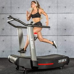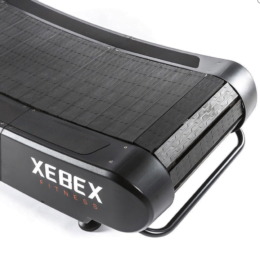 La superficie de goma de la Xebex Runner, vulcanizada, de bajo impacto, amortiguadora, proporciona al corredor más comodidad y menos impacto durante las carreras de larga distancia y los sprints sin límites. Probado para quemar un 30% más de calorías que las cintas de correr motorizadas tradicionales.