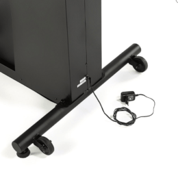 Construido con una base independiente de 91.5kg de alta resistencia que incluye ruedas para facilitar el transporte.