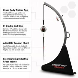 Cross Body Trainer Comercial cuenta con un doble independiente y móvil punch que proporciona entrenamiento de boxeo y golpeo para los entusiastas de todos los niveles. Las unidades son ideales para las clases de grupo dirigidos por instructores que imparten formación y técnicas de ataque con el intervalo de alta intensidad de entrenamiento, sesiones de bajo impacto. Cada unidad incluye un punch de doble de acción rápida.