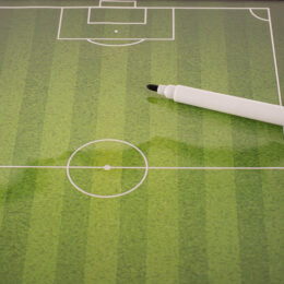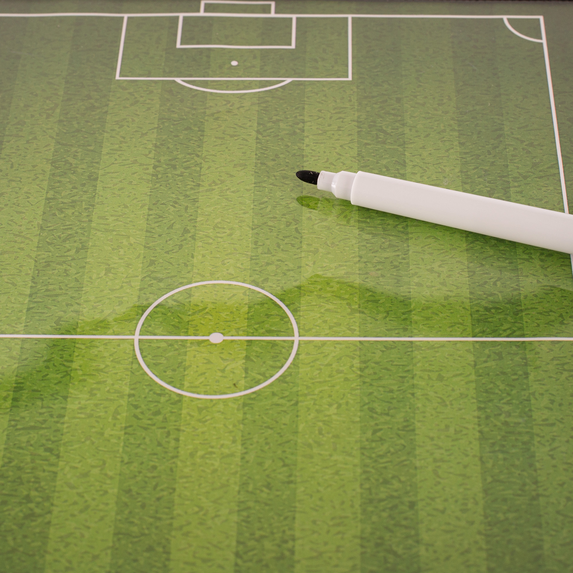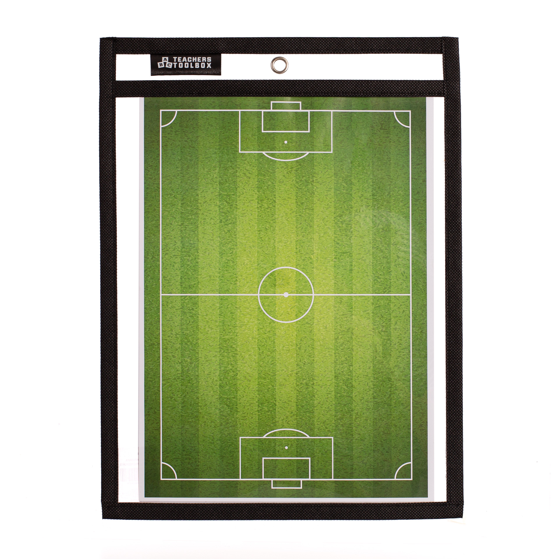 Funda de PVC con función de pizarra. Puedes deslizar en ella diferentes pistas de deporte como fútbol, basket, tenis… para diseñar la táctica y las posiciones de juego y modificarlas tantas veces como quieras (Dimensión de la hoja: A4). Incluye rotulador que se borra fácilmente. También está destinado a actividades de aprendizaje. Este producto no incluye las copias de las diferentes pistas deportivas.