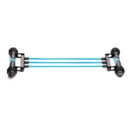 GYM SET 5×1, un nuevo concepto de set para gimnasia, multifuncional, de fácil montaje y muy atractivo en su diseño. Con un simple montaje se puede transformar en 5 elementos básicos: barras de flexiones, goma elástica, tensor, pesas de 1/2 kg. y comba de saltar.