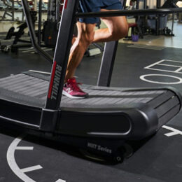 Cinta de correr autopropulsada con chasis curvo que simula una carrera de atletismo perfecta. Su sistema de lamas ofrece mayor comodidad a la hora de correr. El diseño curvo permite al corredor acelerar y reducir la velocidad de la máquina a su antojo. Permite que los usuarios apliquen fuerza para controlar la velocidad. Cambio de resistencia sencillo y a mano en el manillar.