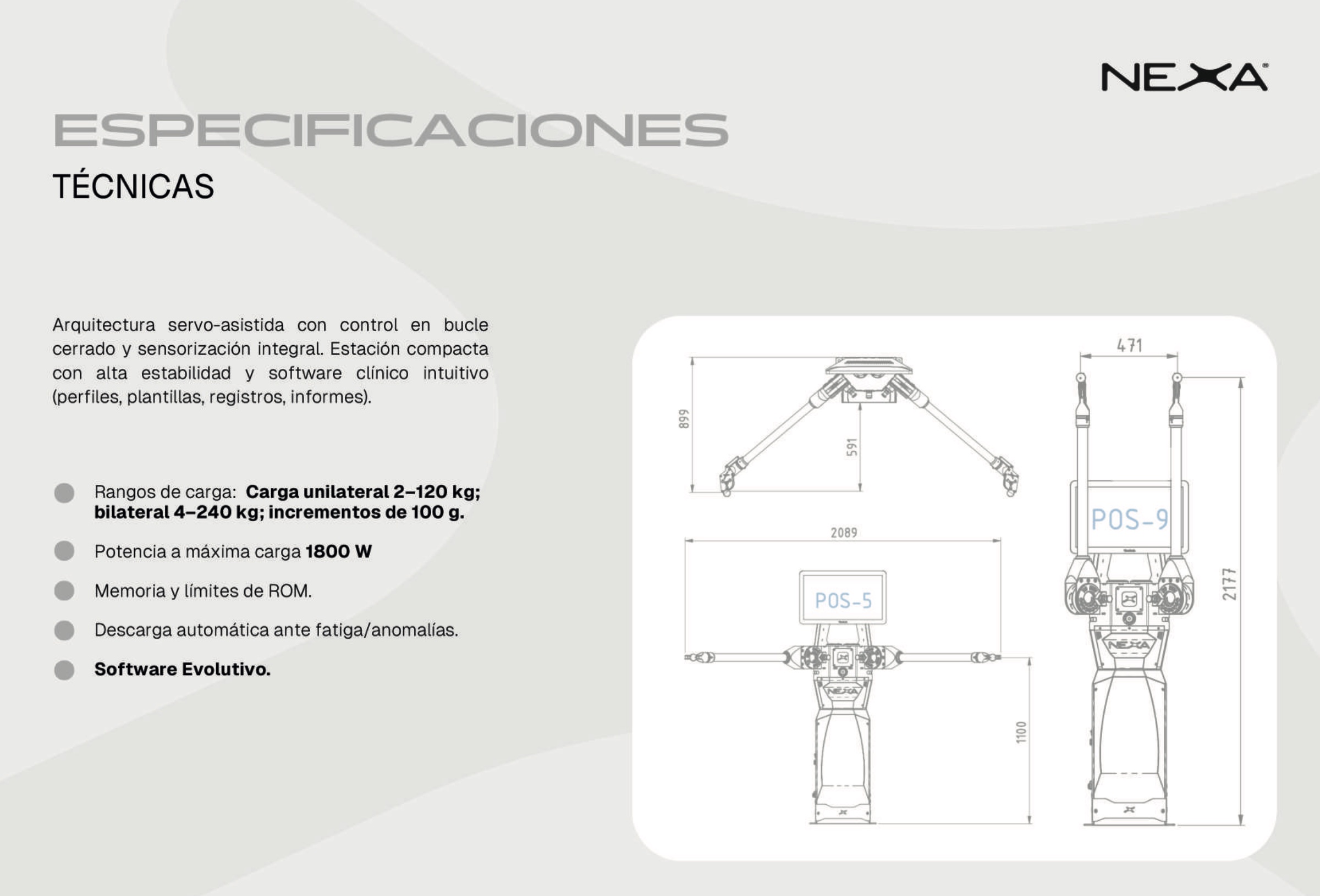 - El servomotor controlado por ordenador puede leer la fatiga o cualquier percance en el ejercicio y desactiva la carga automáticamente.