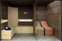 Pantalla de infrarrojos para sauna con embellecedor en madera de ayous.