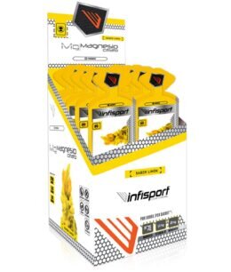 Mg MAGNESIO CITRATO de Infisport® se presenta en displays de 12 sobres reciclables altamente ergonómicos con delicioso sabor a limón y 40 g de contenido.