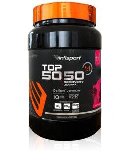 TOP 50/50® RECOVERY 1:1 LEUCINA+ combina en la misma proporción 1:1, distintas fuentes de proteínas de alto valor biológico que contribuyen al mantenimiento/regeneración de la masa muscular dañada junto a un mix de carbohidratos de alto índice glucémico para una rápida reposición de los depósitos de glucógeno muscular.