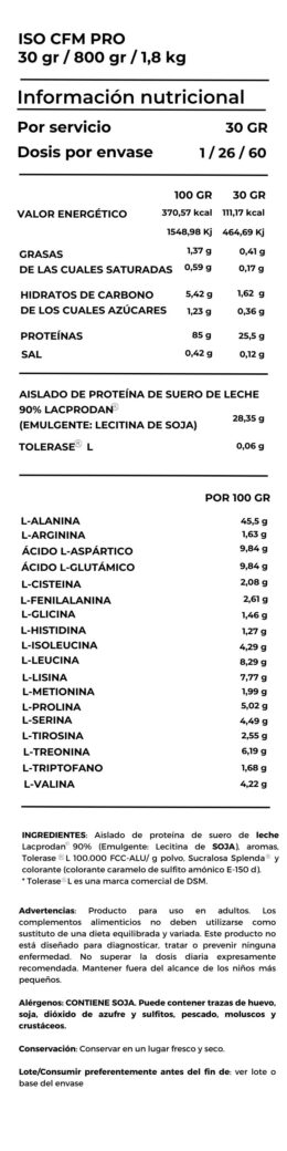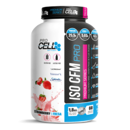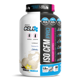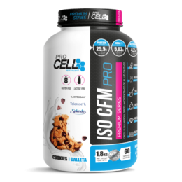 Iso CFM Pro es una proteína compuesta a base de aislado de proteína de suero de 90% Lacprodan, aroma, Tolerase® L y edulcorante Splenda.