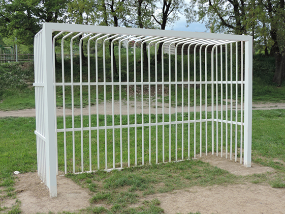 PRODUCCIÓN BAJO PEDIDO. ANCLAR SIEMPRE AL SUELO. Porterías que se suministran en una pieza con las dimensiones normativa FIFA de 3,00 x 2,00 mts interiores, formado por marco postes larguero de sección de 80×80 mm, arquillos metálicos reforzados de sección de 25 mm que hacen la función de red y base rectangular de seccion 80×40 mm con 4 pletinas con agujeros de 1,5 mm para obligatoriamente poder amarrar la portería al suelo. * Portes no incluidos. Posibilidad de pintado en color gris, verde, blanco. consulte otras opciones.