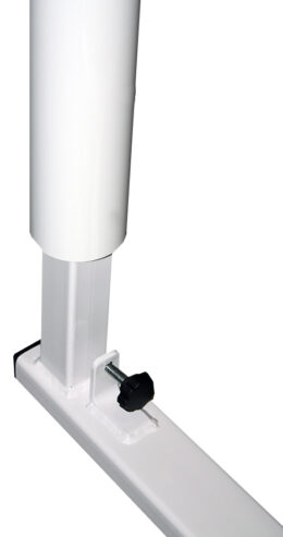 Juego de 2 postes fabricados en tubo de aluminio sección 90mm con base metálica provista de contrapeso y ruedas de nylon. Posibilidad de atornillarlo al suelo. Este artículo está formado por 2 unidades. Se fabrica bajo pedido.