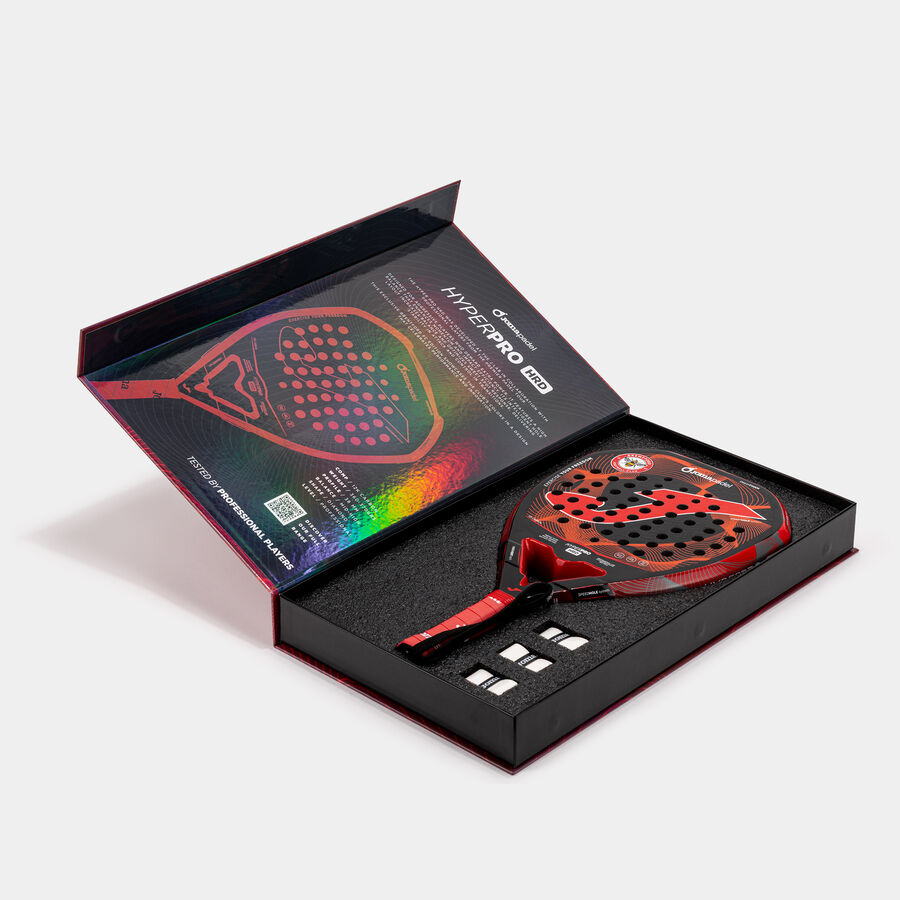 Marco elaborado con la tecnología DUALTECH FRAME. Su estructura de carbono 12k de alta resistencia rellena de BlackEVA HRD de alta densidad absorbe las vibraciones, refuerza la rigidez del marco y aporta una sensación de golpeo más estable y preciso. Su acabado JOMA 3D SPIN en relieve tridimensional aumenta la efectividad y el control en los golpes con efecto como top spin o slice.