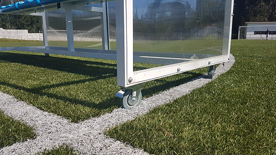 Se trata de un articulo opcional que consiste en 4 ruedas giratorias con freno de quita y pon colocadas mediante guía en pletinas situadas en los bajos del propio banquillo, es importante saber si se quieren con ellas para precisamente colocarle dicha pletina que no llevaría en caso de no ser solicitadas las ruedas.