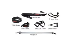 Incluye compresor y el Kit accesorio que consta de Muslera -Cinturón – Cuerda de Triceps – Maneral Simple – Maneral Doble – Tobillera – Barra