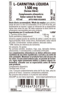 La L-carnitina líquida 1500 mg 473 ml es uno de los productos de la gama de aminoácidos de Solgar® de más alta calidad. Contiene L-carnitina (forma libre), un aminoácido importante para el metabolismo, las células cardíacas y musculares y ácido pantoténico. Fácil de tomar, tiene un sabor a limón natural.