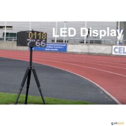 – Para atletismo o MTB, inserte el trípode (incluido con el Led Display) en la ranura preformada de la pantalla. Coloque su pantalla LED en el suelo, después del transmisor FINISH a una distancia máxima de 50 metros.