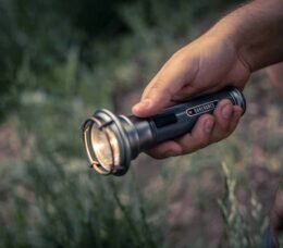 Atractiva linterna vintage Barebones con brillo ajustable. Luz LED de dos posiciones con ajuste de enfoque. Ofrece una excelente resistencia al agua IPX4. Batería recargable Li-ion 18650. LED de 3w con espectro de luz 4000k. 300 lúmenes al máximo y 13 al mínimo. Desde 2,5 horas de duración al máximo hasta 24 horas al mínimo. Está fabricada en acero y aluminio y tiene unas dimensiones de 16,5×6,35 centímetros. Incluye un enganche en la parte inferior para poder ser colgada. Incluye cable de carga USB C que puedes usar con el cargador Barebones.
