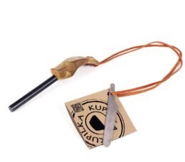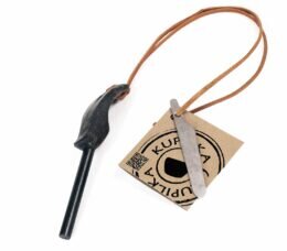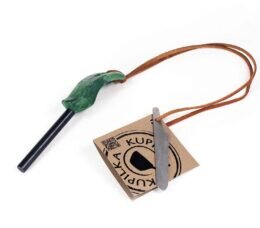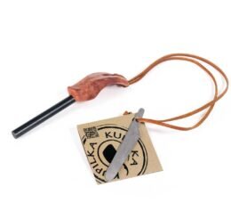 Excelente pedernal ferrocerio Kupilka 8 con un gran diseño de la marca finlandesa. Crea grandes chispas de hasta 3.000 grados para hacer fuego incluso en condiciones de humedad alta. Cordón de cuero y asa muy ergonómica incluso para usar con guantes. Longitud total de 12,4 centímetros con varilla de ferrocerio de 6,5 centímetros.