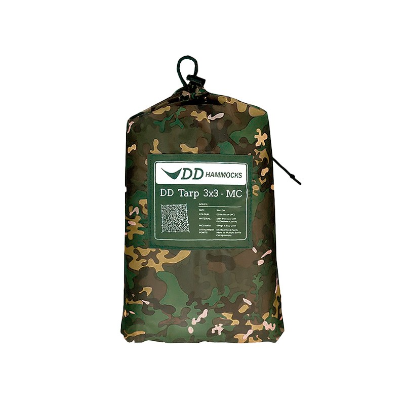 La lona multiusos 3×3 Multicam, de la marca británica DD Hammocks, destaca por su versatilidad, gracias a sus 19 puntos de anclaje; pudiendo ser utilizada como tienda de campaña improvisada, toldo, base para nuestro refugio, o incluso como manta de emergencia. Además, incluye 4 piquetas y 4 tensores para asegurar una sujeción óptima.