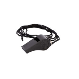 Silbato de plástico estándar con bola. Se sirve con cordón. Se sirve en lote de 5 unidades. Medidas: 42x17x15mm.