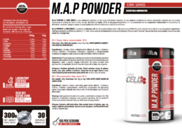 M.A.P. son las siglas en inglés de master amino pattern(en castellano “patrón maestro de aminoácidos”), y se refiere a que este suplemento contiene los nueve aminoácidos esenciales que necesita el cuerpo humano.