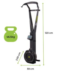 Máquina de esquí nórdico con ventilador de 9 niveles de resistencia al aire para personalizar la intensidad de la tirada. Monitor de última generación para seguir tu progresión con gran precisión. Cuerdas sintéticas y empuñaduras ergonómicas. Conectividad a cinturones de frecuencia cardíaca. Ruedas para facilitar su transporte.