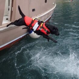 Diseñado para las necesidades de los perros de rescate y útil para todos los perros que trabajan en el agua o en una embarcación.