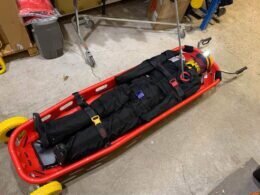 Las extremidades desmontables también pueden fijarse parcialmente utilizando el velcro en el extremo de la extremidad para fijar parcialmente la extremidad – ¡de este modo la extremidad puede caerse durante la recuperación si el rescatador no realiza una evaluación exhaustiva de las lesiones!