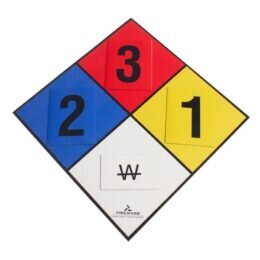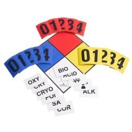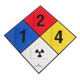 Este juego, que consta de 27 elementos diferentes, es totalmente magnético y consta del rombo de la NFPA, así como de los números del 0 al 4 en los colores amarillo, rojo y azul. Las indicaciones especiales están en blanco. Todas las señales magnéticas son flexibles, lo que permite aplicarlas a prácticamente cualquier superficie metálica. El juego se entrega en una práctica caja de plástico para su almacenamiento y transporte.