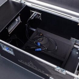Todos los cables de funcionamiento de las máquinas de humo pueden conectarse fácilmente al exterior del BAMBI. También es posible mantener las latas de líquido de humo fuera del BAMBI. Esto es muy fácil de rellenar. ¿Y se utilizan varios BAMBI? Entonces se pueden apilar fácilmente durante el transporte y el almacenamiento gracias a los platos apilables incorporados. Gracias a la gran cantidad de asas, el BAMBI también es fácil de levantar.