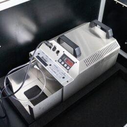 El BAMBI puede utilizarse con los generadores de humo Cumulus y Stratus. Así que el BAMBI es un accesorio, no una máquina de humo especial para una aplicación. Por lo tanto, ¡es económico! Las máquinas se colocan en una cámara de humo que se pone en sobrepresión mediante un sofisticado sistema. El humo acumulado se dispersa a través del sistema de mangueras sin romperse. Un problema que surge cuando el humo es conducido “a través” de un ventilador.