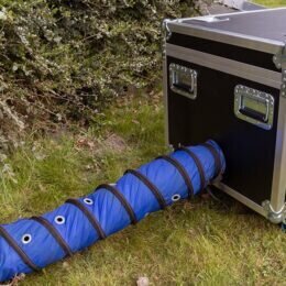 Se pueden conectar varias mangueras de humo perforadas al BAMBI. Si es necesario, también pueden ser tubos de alcantarillado perforados o mangueras de drenaje. Esto hasta una longitud de 50 metros. El BAMBI es perfectamente capaz de suministrar humo y presión a toda esta longitud. El humo de la práctica saldrá uniformemente de todos los agujeros en toda la longitud. Aplicando esta técnica, se crea una capa frontal de humo sobre y en el suelo. Donde normalmente una nube de humo sería soplada sobre la reserva natural.
