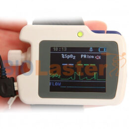 -Monitoriza saturación de oxígeno (SpO2), pulso arterial (PR) y muestra gráficas de pulso, saturación de oxígeno y flujo de aire nasal.