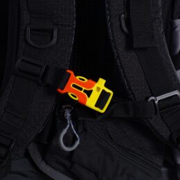 La mochila también cuenta con refuerzos y cierres tipo mochila para un mayor ajuste y también una funda anti lluvia.