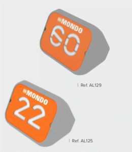 Conjunto de prismas señalizadores de la distancia lanzada en las pruebas de lanzamiento de disco, martillo y jabalina. Incluye en 2 de las 3 caras principales una placa LED, que permite retroiluminar el dígito indicador. Dicha placa está formada por una matriz de leds SMD de alta luminosidad, con una resolución de 48*48 px, capaz de proporcionar un brillo máximo de 5000 nits y que permite su visualización correcta independientemente de las condiciones luminosas ambientales.