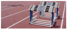 En la base, perpendicularmente,y en sus dos esquinas frontales, se insertan dos tubos de aluminio de sección circular y diseño propio que posicionan la traviesa en las diferentes alturas (1,067 m, 1,000m, 0,914 m, 0,838 m, 0,762 m) mediante al accionamiento de unos gatillos situados en la parte superior bajo la tabla.