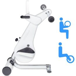El MOTOmed loop impresiona por su inteligencia digital única y su aspecto visual. Casi todos los modelos se pueden actualizar en términos de equipamiento y funcionalidad mediante un paquete de actualización. El MOTOmed loop también incluye su exclusivo ajuste de altura, que permite a los usuarios ajustar la altura de sus modelos MOTOmed sin necesidad de herramientas, así como variar con facilidad y sencillez de un entrenamiento de brazos a otro de piernas. Además, el material de alta calidad de las superficies suavemente redondeadas del MOTOmed new generation, cumple con los altos requisitos de gestión de la higiene en instalaciones y clínicas.