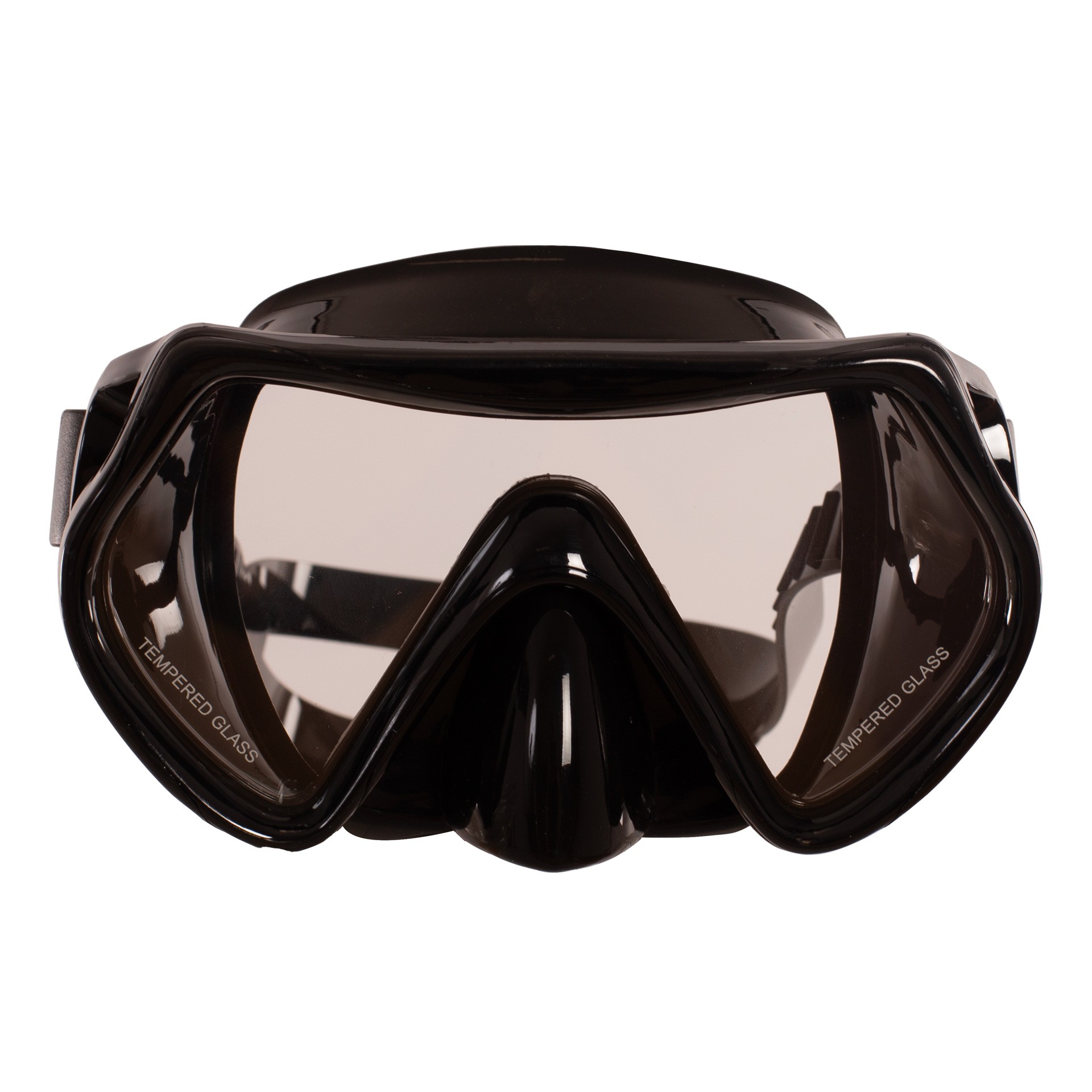Máscara de natación cómoda y resistente para disfrutar en el agua. Cuenta con lentes de cristal templado y un gran campo de visión. Antivaho.