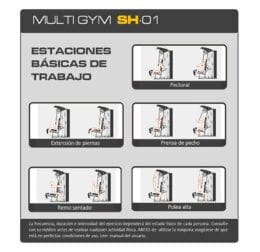 Máquina multifunción que permite trabajar la musculatura de todo el cuerpo. Ideal para el entreno de la MUSCULACIÓN. Permite realizar más de 35 ejercicios distintos. Sus altas prestaciones, su facilidad de uso y robustez la convierten en un elemento indispensable para un entrenamiento de calidad, tanto en casa como en comunidades de propietarios, hoteles y pequeños centros de fitness.