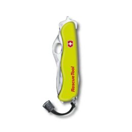 La navaja de rescate o Rescue Tool, de la marca Victorinox, ha sido diseñada en estrecha colaboración con expertos de los servicios de rescate. Ofrece 13 funciones con las que salvar vidas en situaciones de emergencia. Sus herramientas están hechas en acero inoxidable martensítico, un material caracterizado por su resistencia a la corrosión y dureza.
