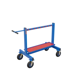 Soporte de jabalina de acero pintado en polvo con ruedas.