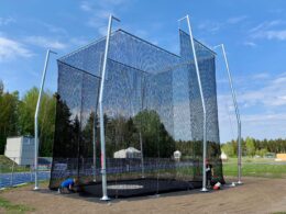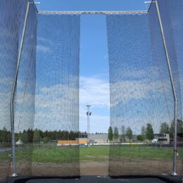Las jaulas para martillos y discos más seguras del mundo. Es sencillo y rápido cambiar la apertura para lanzadores derechos o izquierdos con la ayuda de nuestro nuevo sistema de cortinas. Alta visibilidad dentro y fuera, gracias a solo 6 postes, en lugar de los sistemas tradicionales de 12 postes. Cumple con todos los requisitos internacionales y nacionales. Certificado IAAF nº E-19-1005.
