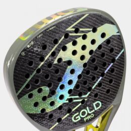 La pala Gold Pro es un modelo en forma diamante con el núcleo elaborado con FLEXO Black EVA de alta densidad. La cara de fibra de carbono FLEXSHIELD 3k hace que sea más rígida y, por tanto, que garantice altas prestaciones en cada punto. Además, incorpora planos ROTATION en relieve para hacerla aun más potente. Por otro lado, el marco elaborado con fibra de carbono EXO COUNTER garantiza la durabilidad y la rigidez de la pala.