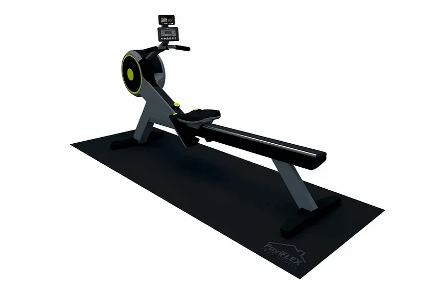 Pavimento de goma de grandes dimensiones perfectas para el trabajo sobre máquina de remo en casa y todo tipo de maquinaria cardio amateur o profesional: bicicleta estática, rodillos, ciclo indoor, elíptica o cintas de correr… Además de bancos de trabajo y marcuernas o kettlebells.