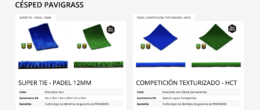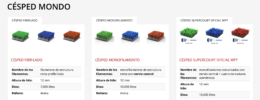 - Césped fibrilado, monofilamento o supercourt de 12 y 10 mm en varios colores.