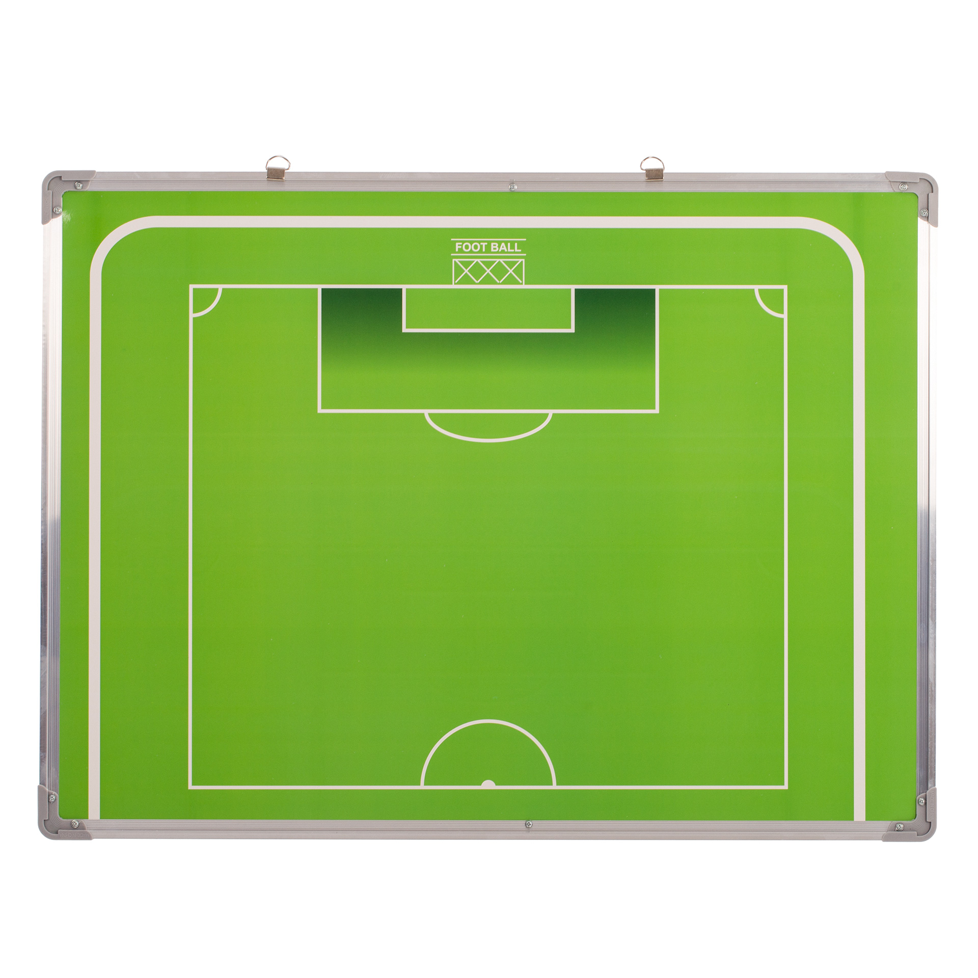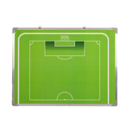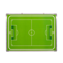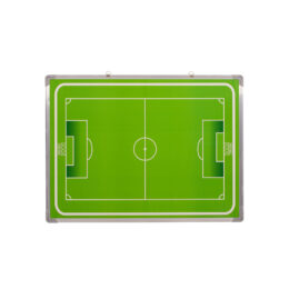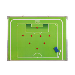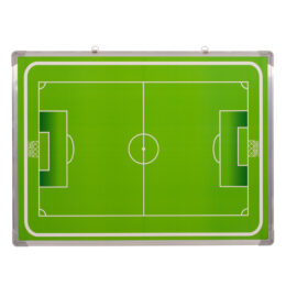 Pizarra cerco de aluminio y diseño de campo de fútbol perfecta para el diseño de tácticas y planificaciones de juego…Reversible y magnética. En uno de los lados incluye campo completo y en el otro medio campo. Incluye fichas magnéticas numeradas, rotulador y borrador. Cuenta con dos anillas para facilitar su colocación. Cantos protegidos.