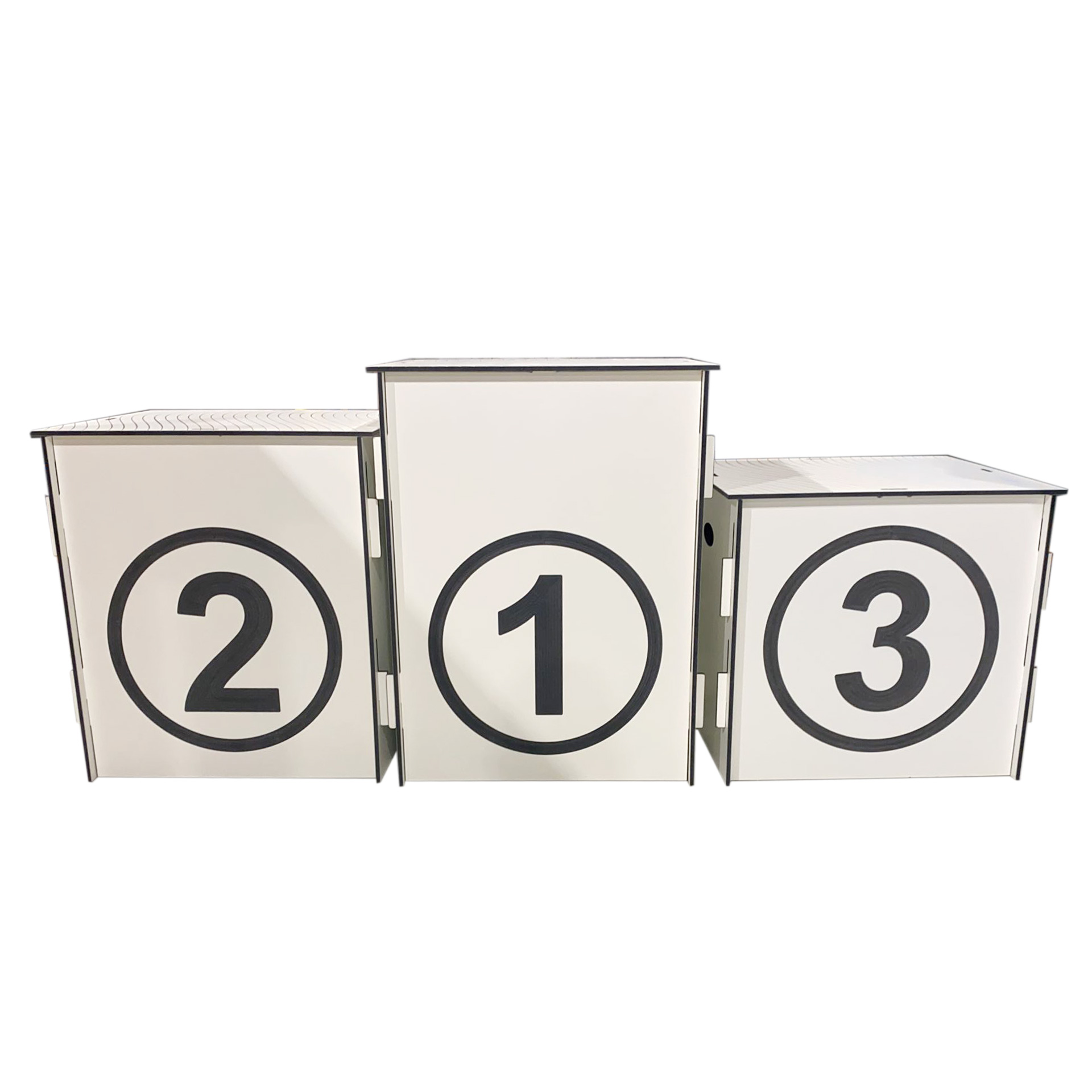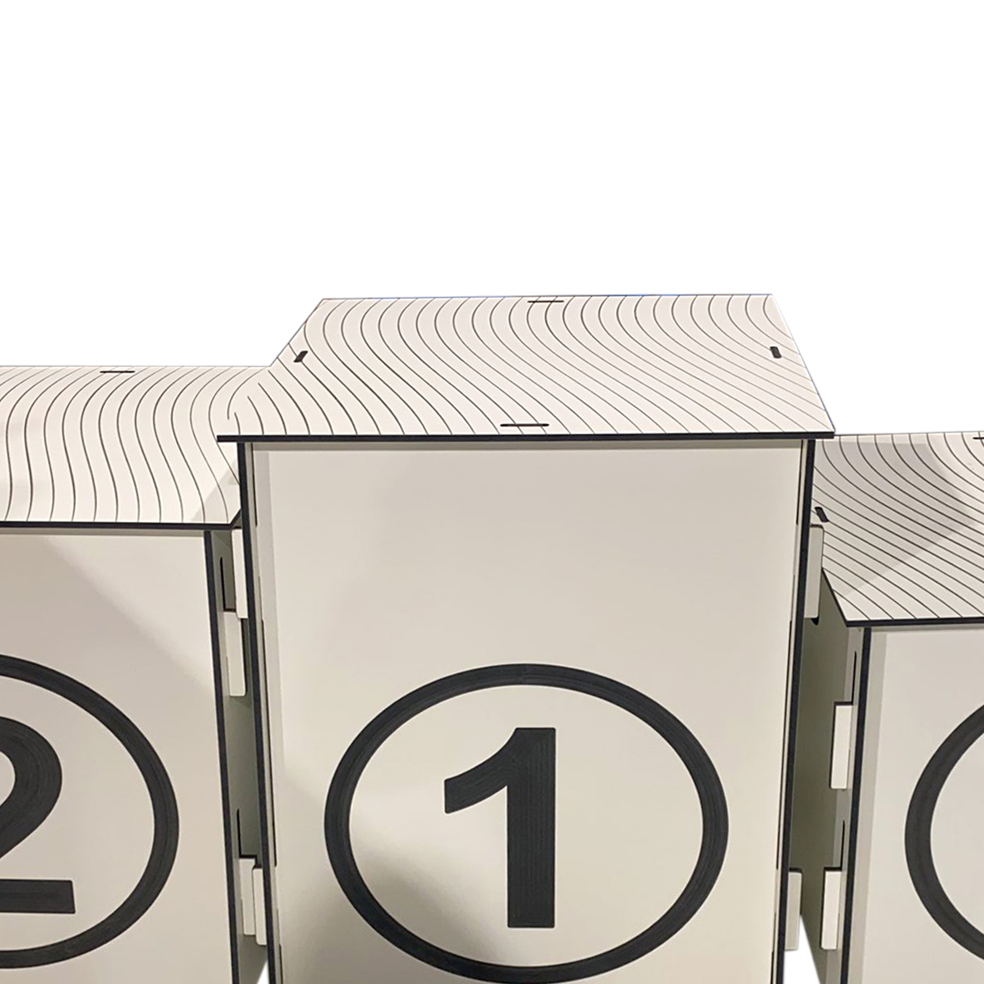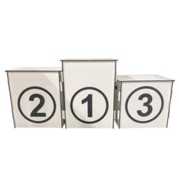 Podium de estructura fenólica de 8 mm de espesor con base rallada para evitar resbalones. Personalizados mediante grabados o fresados. Medidas de cada pieza: 50x50x50cm/60x60x60cm/ 70x70x70cm. Consulta fabricación de otras medidas. Producción bajo pedido.
