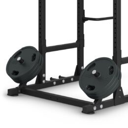 El Power Rack HPR70 combina versatilidad y comodidad. Equipada con una barra de dominadas multiagarre, ganchos en J, indicadores de seguridad y espacio específico para barras olímpicas y discos, además de soportes para discos para ampliar tu rutina de ejercicios.