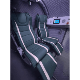 Los usuarios respiran oxígeno de alta pureza a través de una máscara BIBS dual o sistema de flujo libre (máscara o cánula), alimentado por cuatro concentradores de oxígeno de 20 LPM (cada uno) de x 5,0 bar* que eliminan la necesidad de tanques de oxígeno. Un enfriador* mantiene una temperatura interior cómoda durante las sesiones. Una tableta de control de pantalla táctil de estilo Tesla interno/externo cuenta con programación de protocolos personalizados, presión en tiempo real, niveles de oxígeno, velocidad, temperatura, ajustes precisos y seguimiento de sesiones. La cámara se puede operar sin asistencia externa.