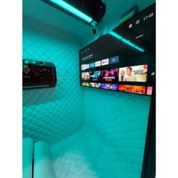 En el interior, los usuarios se benefician de asientos ergonómicos con opciones de asientos de salón o sillones reclinables eléctricos Maybach, iluminación LED ajustable, ventilación continua y un interior de cuero ecológico de alta calidad personalizable en varios colores. Los sistemas de comunicación dual garantizan un contacto constante con los operadores, y el sistema de entretenimiento integrado ofrece televisores o tabletas de pantalla grande para una experiencia más personalizada.