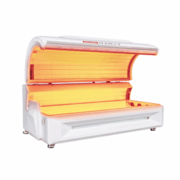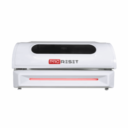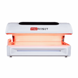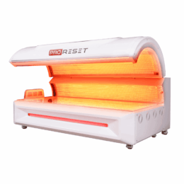 una cama de terapia premium diseñada con acrílico de Lucite del Reino Unido que cuenta con una transmisión de luz del 99 % que garantiza el máximo efecto terapéutico rojo e infrarrojo cercano.